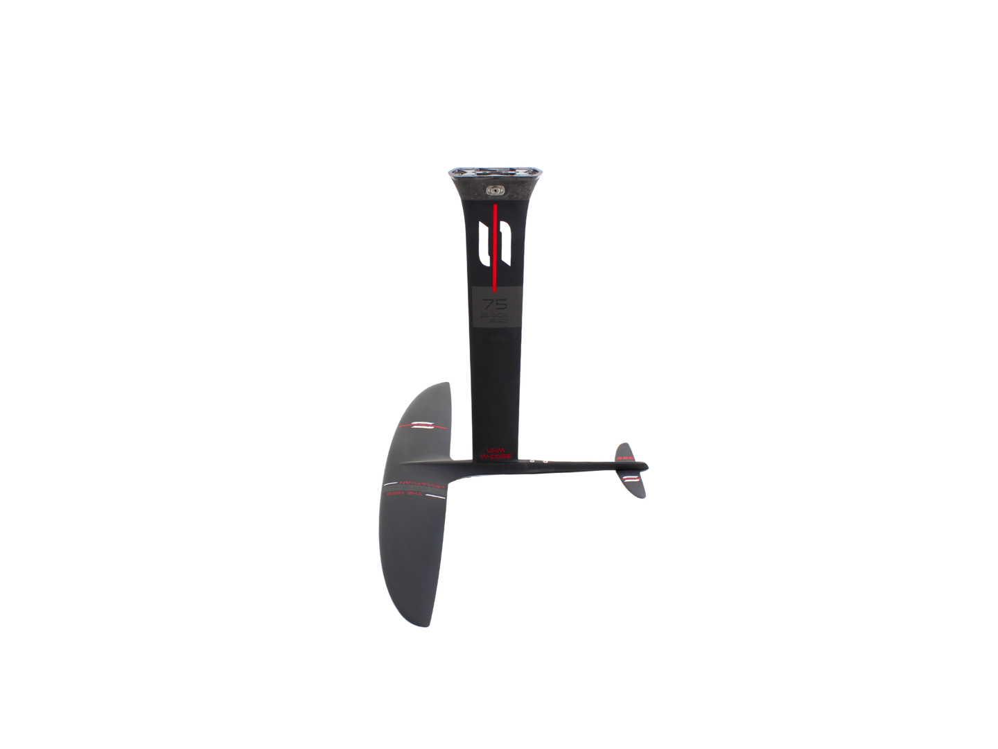 Beyond the Margin of ErrorHigh-aspect efficiency usually comes with a price: punishing stall speeds and a razor-thin margin for error. Whether you are navigating a technical rock start or hunting for glides on a glassy lake, most foils demand perfection. A single mistimed pump often ends the session. The KIT 1350 Blackbird is the solution for riders who value flight time over swimming, balancing elite performance with the forgiveness needed to „save” every ride.THE 1350 & Active-Lift SynergyThe centerpiece of this kit is “THE 1350”, a wing that has been redesigned to work in perfect harmony with our Active-Lift technology. By engineering the system to generate its own hydrodynamic lift, we’ve effectively „unlocked” the wing’s potential. This allowed us to refine the profile of THE 1350, making it thinner and faster while retaining the massive lift and legendary accessibility the Leviathan is known for.Supporting this powerhouse is the FC/M Modular back-fuselage. This full carbon backbone provides the ultimate platform for customization: its modular nature allows you to swap to your preferred stabilizer and use shims for precise tuning. This means you can micro-adjust the angle of attack to match your pumping cadence and weight, ensuring the system feels like a natural extension of your body. Paired with the SF/325 flat stabilizer, the setup minimizes drag and maximizes agility, turning a high-surface wing into a responsive carving machine. Finally, the M75/BB ultra-high modulus mast with W-Core technology ensures a direct connection between board and hydrofoil for the best performance.Tech & Feel“THE 1350” Front Wing: The heart of the system. Experience a perpetual glide sensation with a wingspan that provides rock-solid stability and effortless low-speed take-offs.Active-Lift Integration: The system creates a „weightless” feel underfoot, significantly lowering the stall speed and allowing you to recover from missed pumps that would ground other foils.FC/M Modular Fuselage: A rigid, full carbon connection that offers total tuning freedom. Use shims to dial in your ride or swap stabilizers to adapt to different conditions.Flat 325 Stabilizer: Engineered for pure hydrodynamics. Its flat profile reduces drag to the absolute minimum, facilitating higher top-end speeds and agile rail-to-rail transitions.Full Carbon Responsiveness: Every ounce of energy from your legs is translated into forward drive. The structural stiffness of the kit ensures zero power loss during high-intensity pumping.